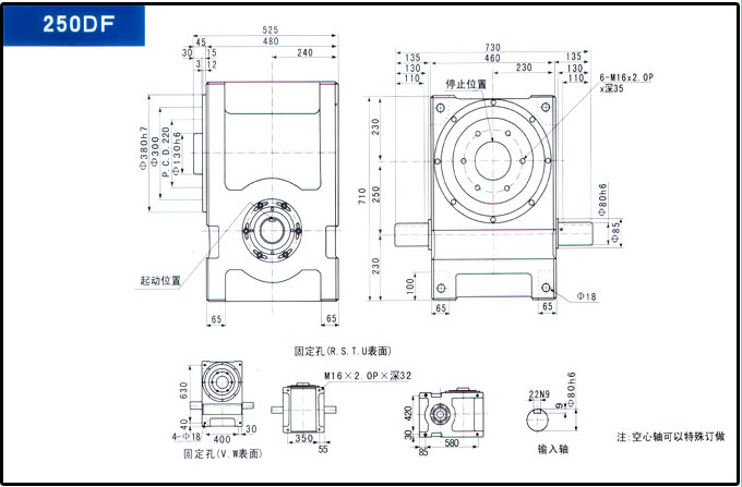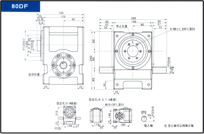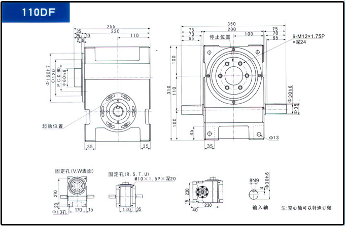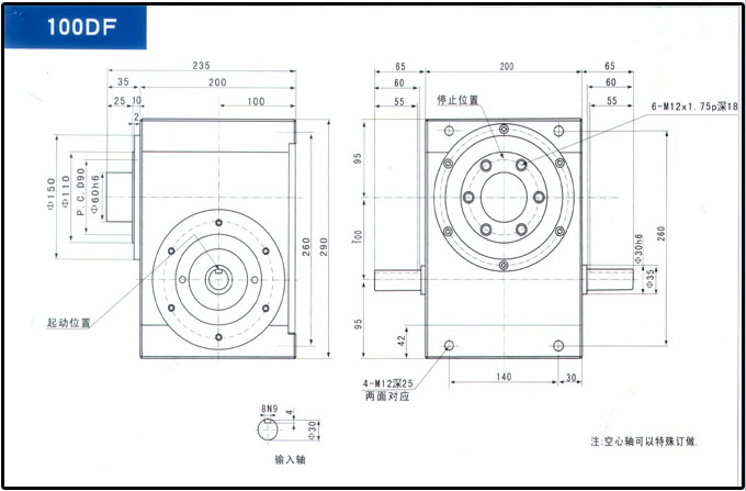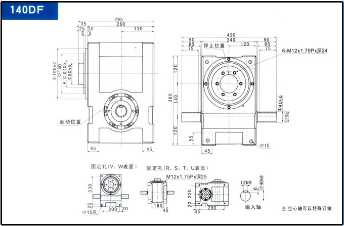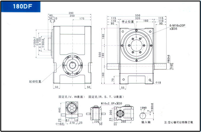 此機種具備重負荷特征、可蒙受較大的垂直徑向或軸向壓力,其輸入軸為法蘭盤式設想,有凸緣中間、盤面螺孔、定位、銷孔、牢固面廣大、可以使鏈接件更具備堅固安穩。能合用于較大負荷的反轉展轉式圓盤驅動場所,別普遍利用在各種盤式加工機器及近似機構的財產機器,主動化間歇驅動部,驅動圓盤。